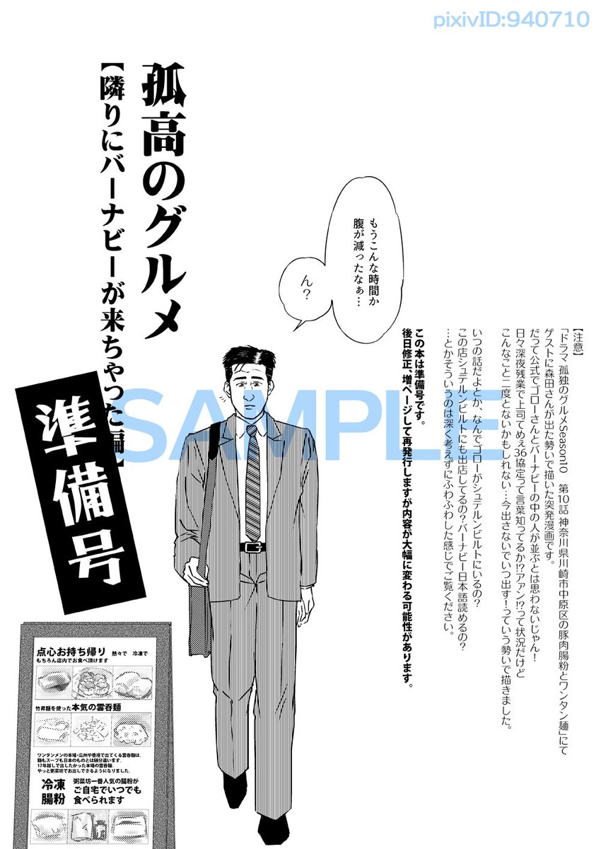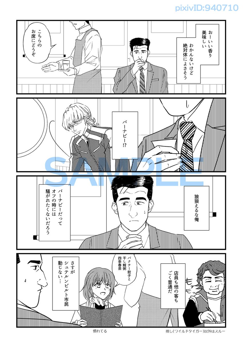 C101新刊サンプル 孤高のグルメ【隣りにバーナビーが来ちゃった編】準備号 ドラマのmrtさんゲスト回ネタの準備号のコピー本。 B5/12P/コピー/100円 pixiv.net/artworks/10400…
