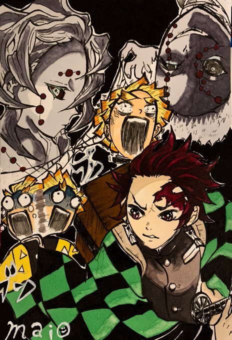 おはようございます☀️冨岡さんの爆笑髪の毛に白ラインいれました🥳🥳これでほんとの完成👏🏾👏🏾👏🏾ちなみにこんな時間に起きるのは小学生ぶり #鬼滅の刃イラスト #アナログ画 #絵描きさんと繋がりたい twitter.com/sayatougapas…