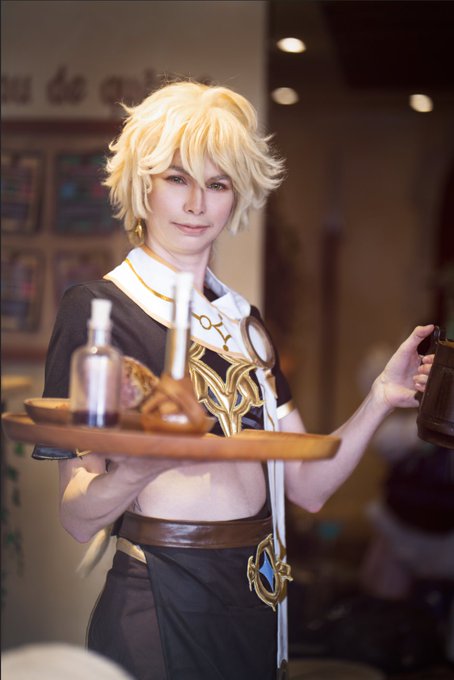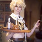 Traveler became a waiter in Diluc Tavern UwU 📸 : @_Yukitsune_ Event Organisation : Clafti #Aether #GenshinImpact #genshincosplay #cosplay