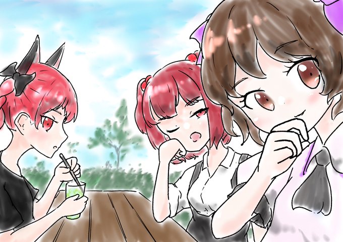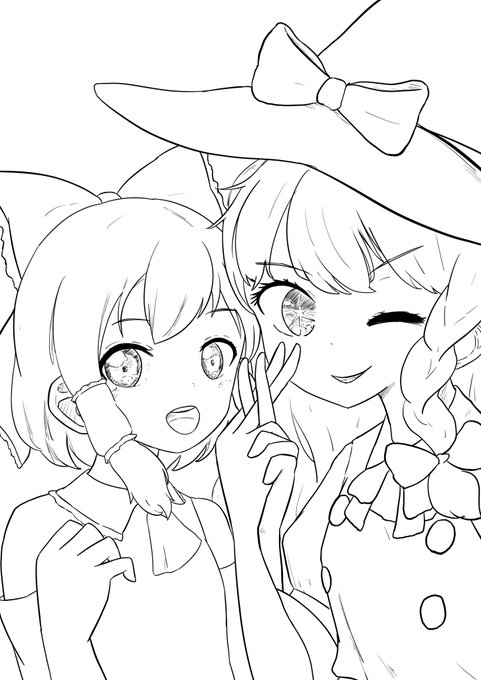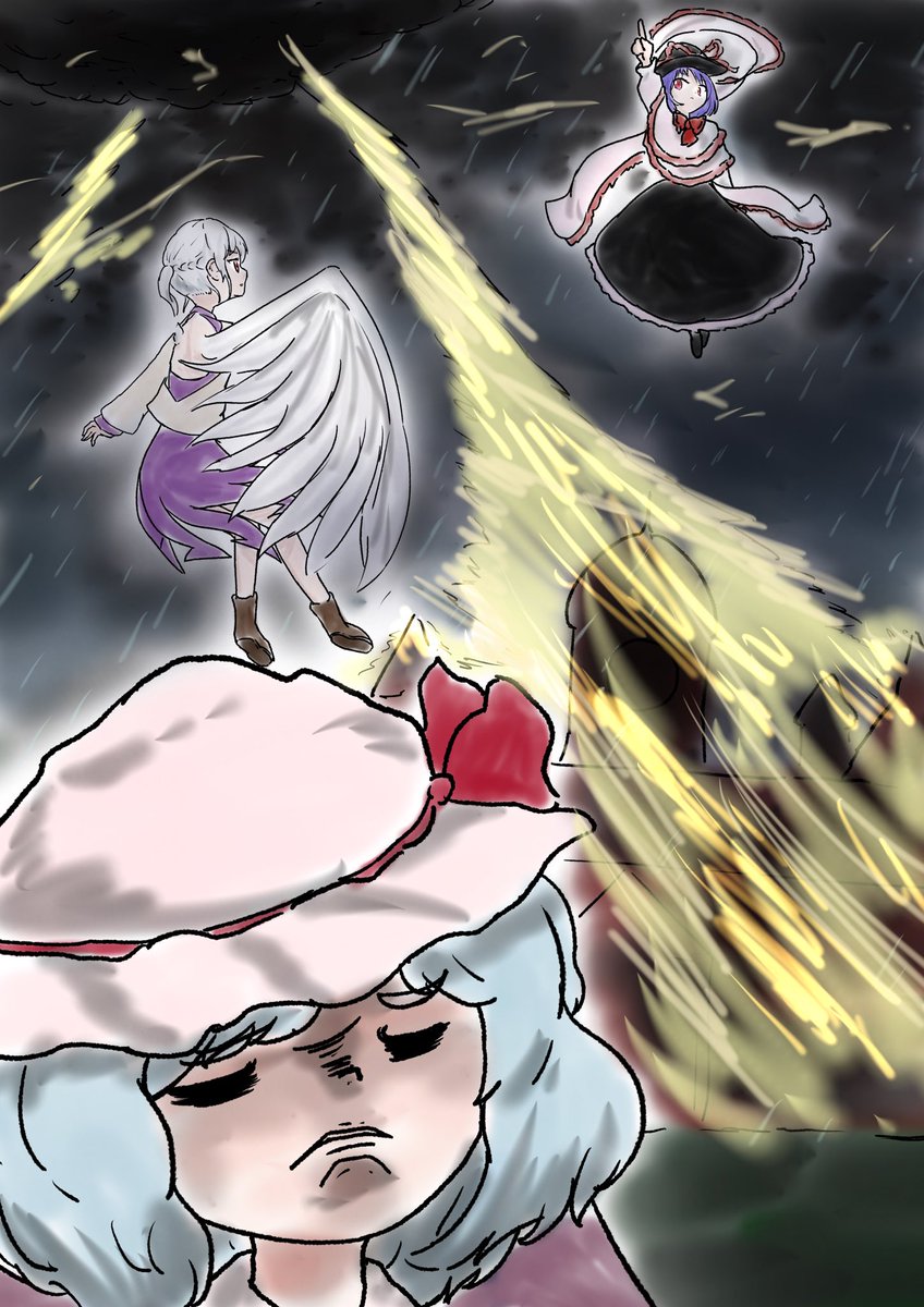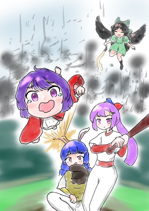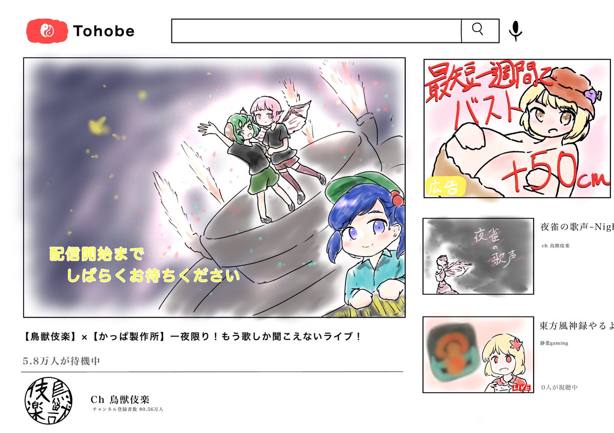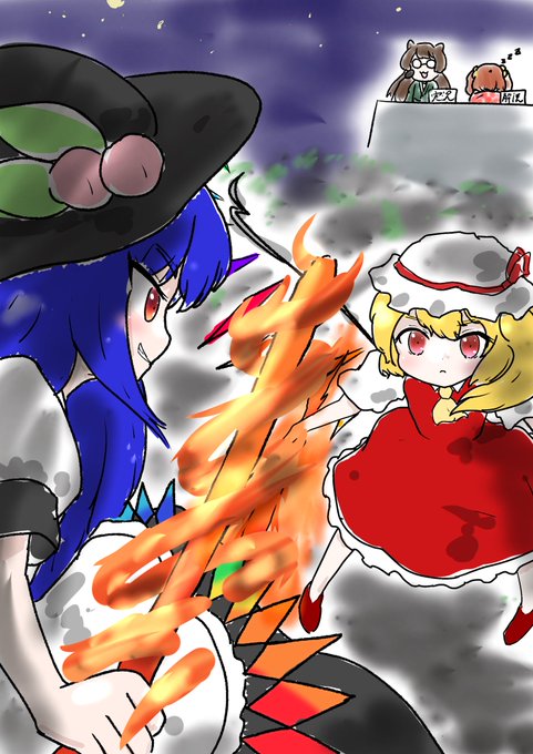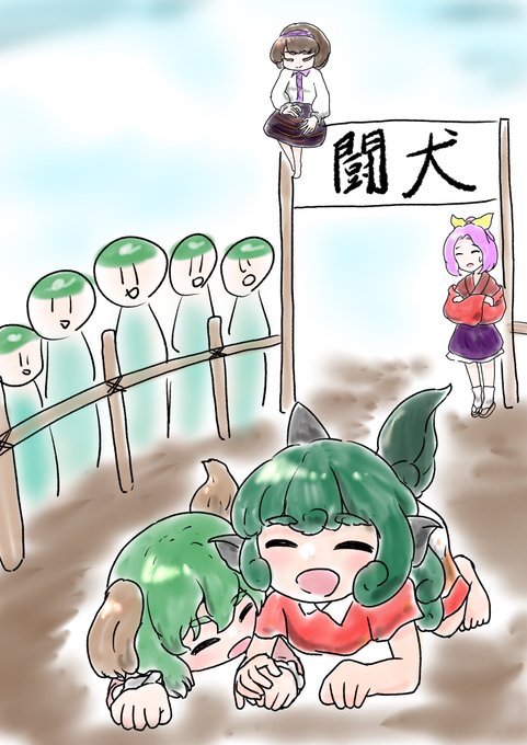 #深夜の真剣お絵描き60分一本勝負 慧音「なんか大きいのが増えてる…」 Keine”Ah…A big one increased before I knew it.” ちょっとモブの子小さく描きすぎたかあな