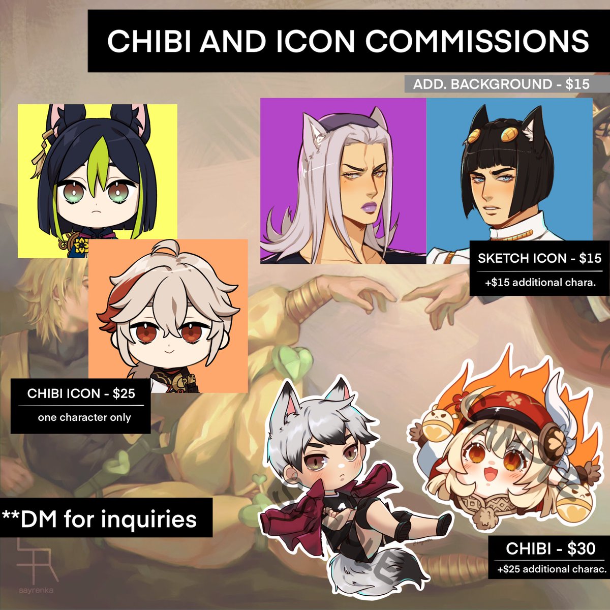 [COMMISSIONS OPEN] Heya! I'm opening slots for commissions (3-5). If you're looking to commission, feel free to browse through my carrd to check out other samples: sayrenka.carrd.co For inquiries please send me a DM. Retweets are much appreciated 🙇✨