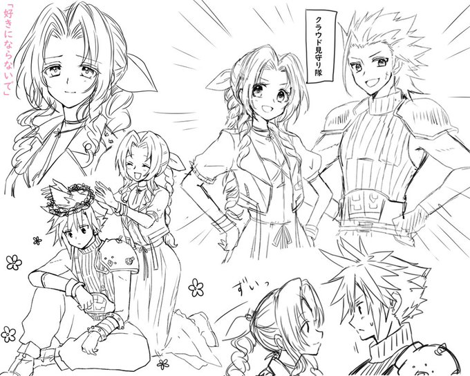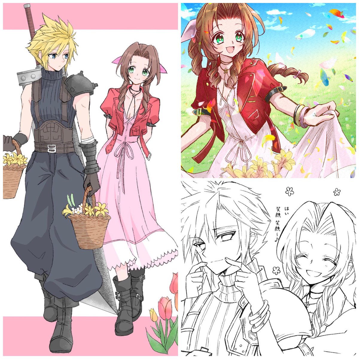#オタママツイオフ #オタママツイオフ_今月のお題 【花火】 FF7のクラウドとエアリス ゴールドソーサーでのシーンを描きました🎡✨エアリスの台詞と『花火に消された言葉』が大好き…!😭