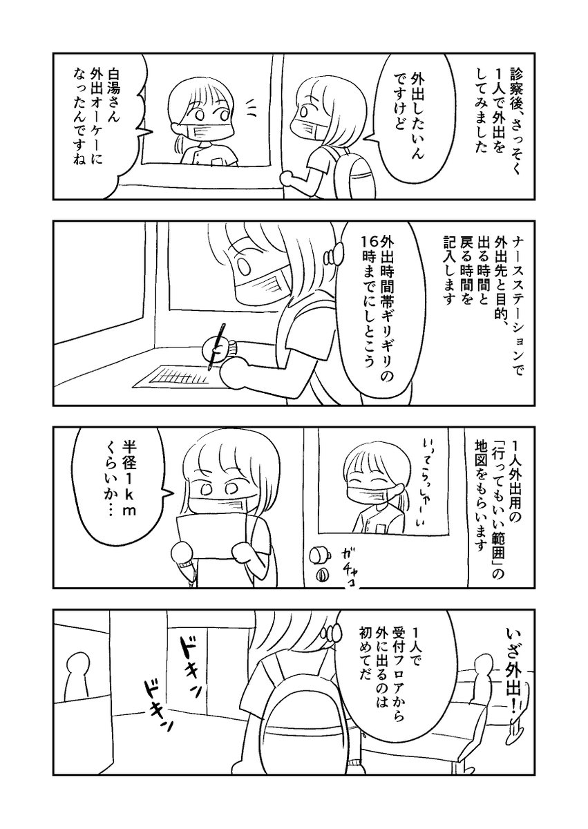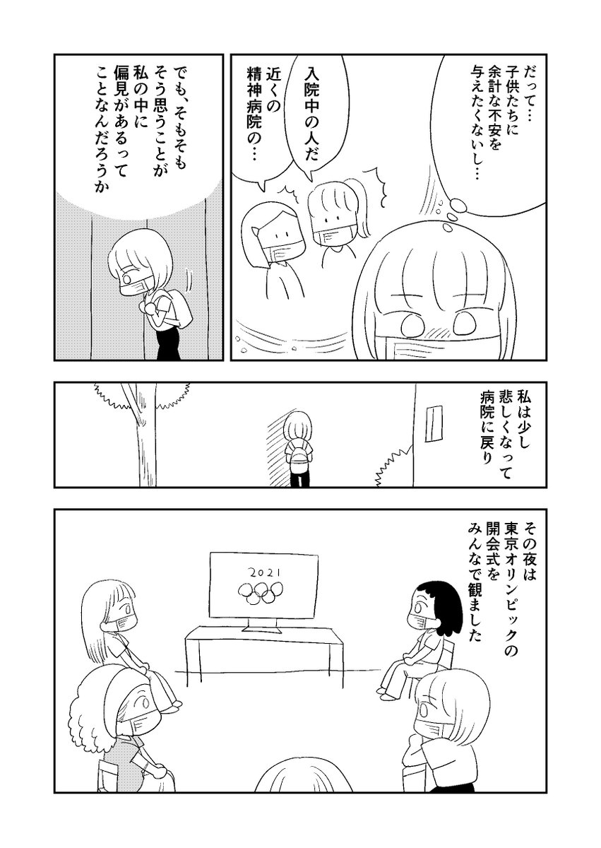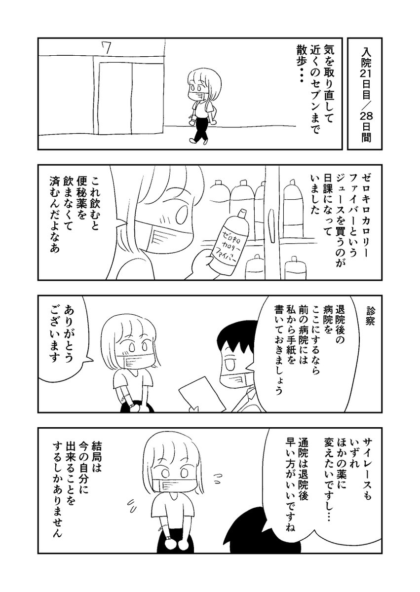 7 56 一昨年、統合失調症で入院した日記をエッセイ漫画にしました。最終話(3/4) #統合失調症 #エッセイ漫画 #漫画が読めるハッシュタグ 23/03/12 10:40