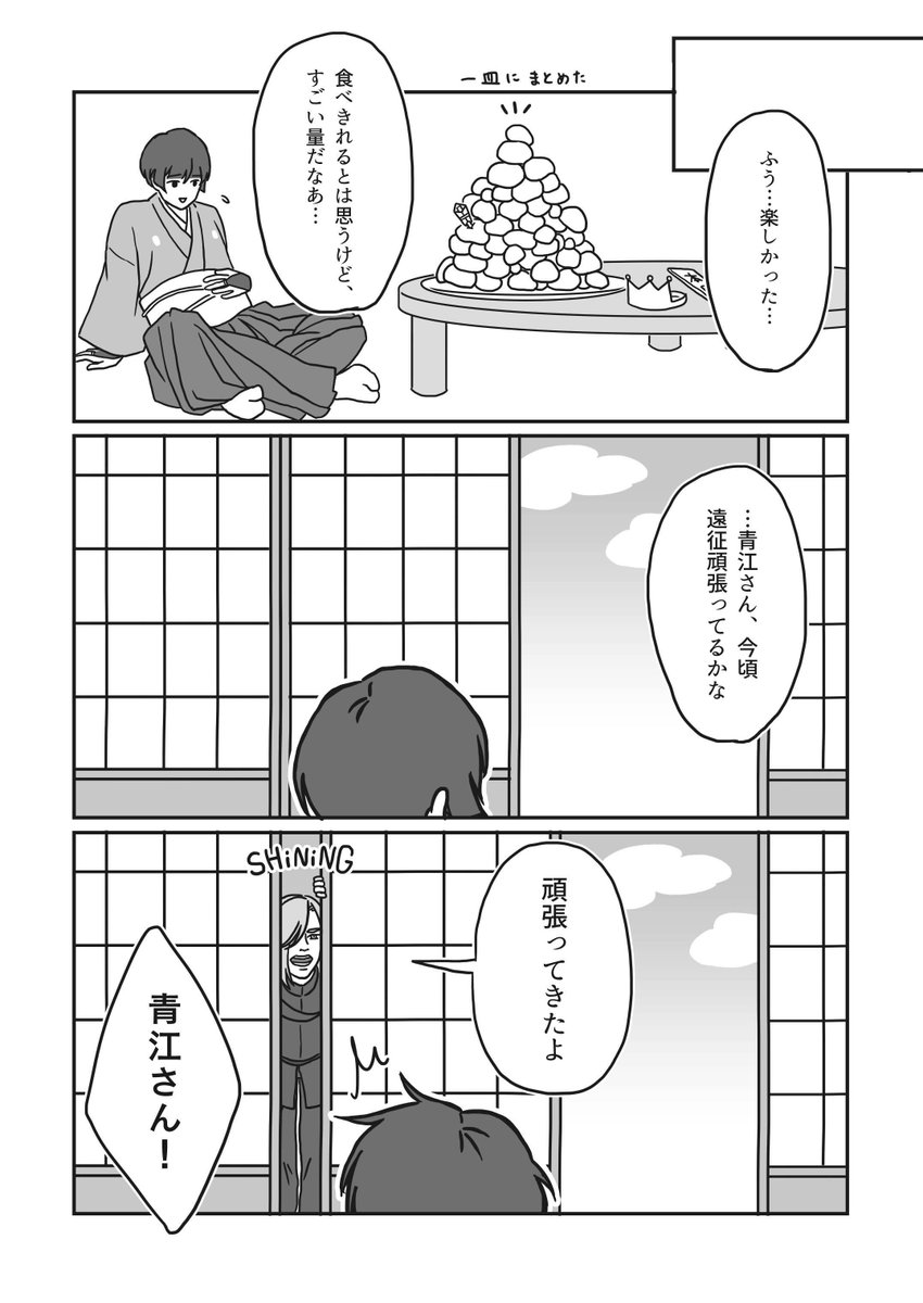 55 170 おめでとうございます!!!🌸🌸🌸 (かわいい丸と変な江を描きたかった漫画です) #2月22日は石切丸の日 23/02/22 04:06