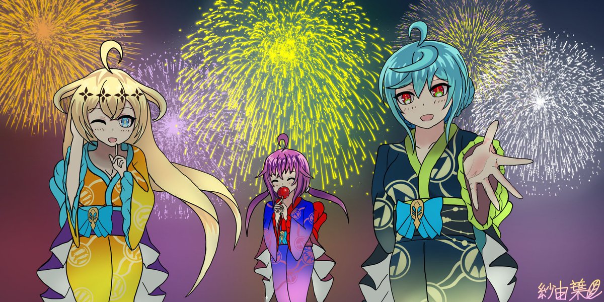 『誓約の夏、夢のひととき』 初めてちゃんとカシウス、フェイル、ティファレト3人を描きました٩(๑òωó๑)۶ 浴衣着た3人と一緒に花火見に行きたかったなぁ...(っ ॑꒳ ॑ c) #ファンキル #ファンキルファンアート #ふぁんきるぎゃらりー