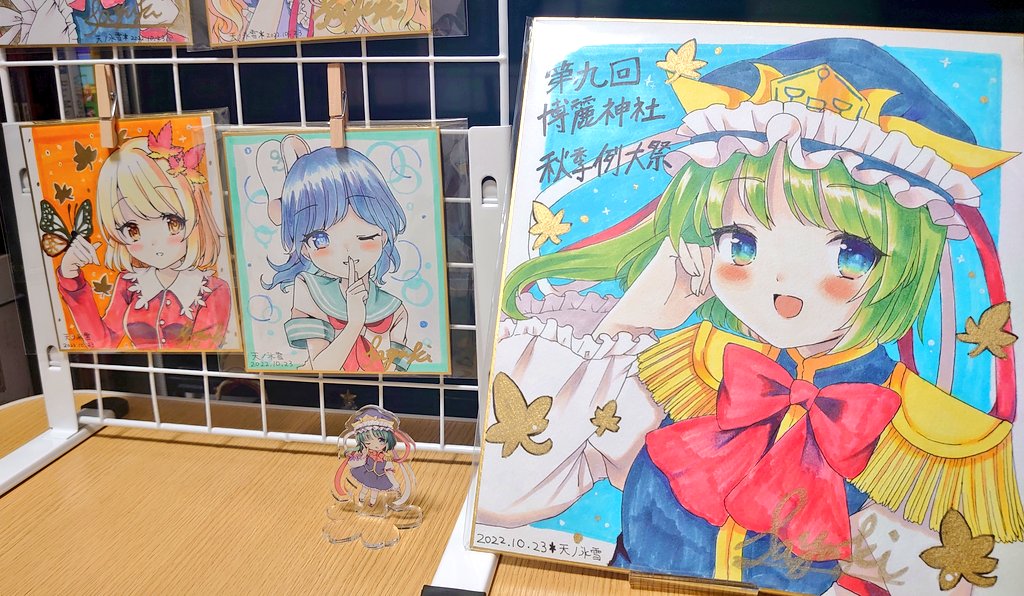 3 7 持っていく色紙達です✨ 映姫様、紫様、静葉様、村紗船長描きましたぞい💪 お待ちしております〜🙇♀️ 22/10/21 23:52
