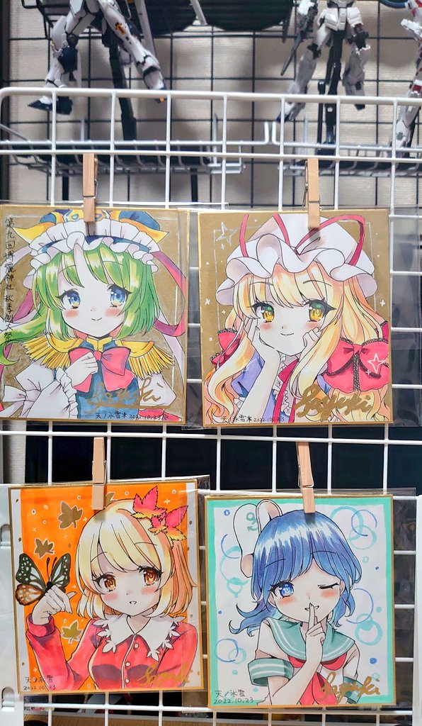 持っていく色紙達です✨ 映姫様、紫様、静葉様、村紗船長描きましたぞい💪 お待ちしております〜🙇♀️