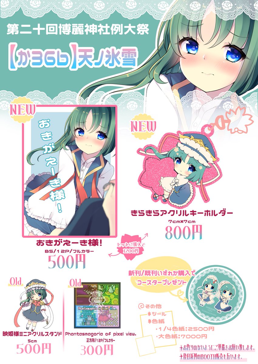34 76 【2022年10月23日(日)第九回博麗神社秋季例大祭】 《た13b 天ノ氷雪》秋例のお品書きです!えーき様もりもり&花映塚ドット絵イラスト本ご用意しております! 色紙もご用意しておりますので、欲しい方はお声がけください💪 当日はよろしくお願い致します!🙇♀️✨ #秋季例大祭 #秋季例大祭9告知 22/10/18 22:48