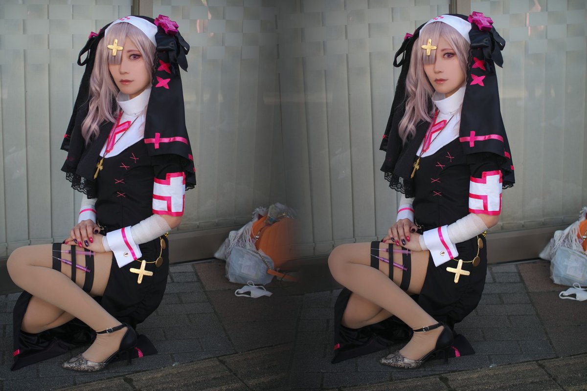 ⚠ 🌈🕒☞Cosplay ⚠ 💉💘×🎃 photo ( @stereo_gs_west ) 平行法?画像の真ん中に仕切り板を置いて2つの画像を真っ直ぐ見ると立体に見える写真を撮ってくださりました✨ マジでそこにいる?!ってなった……しゅごい🥳 #刈谷アニコレ2022 #刈谷アニメcollection
