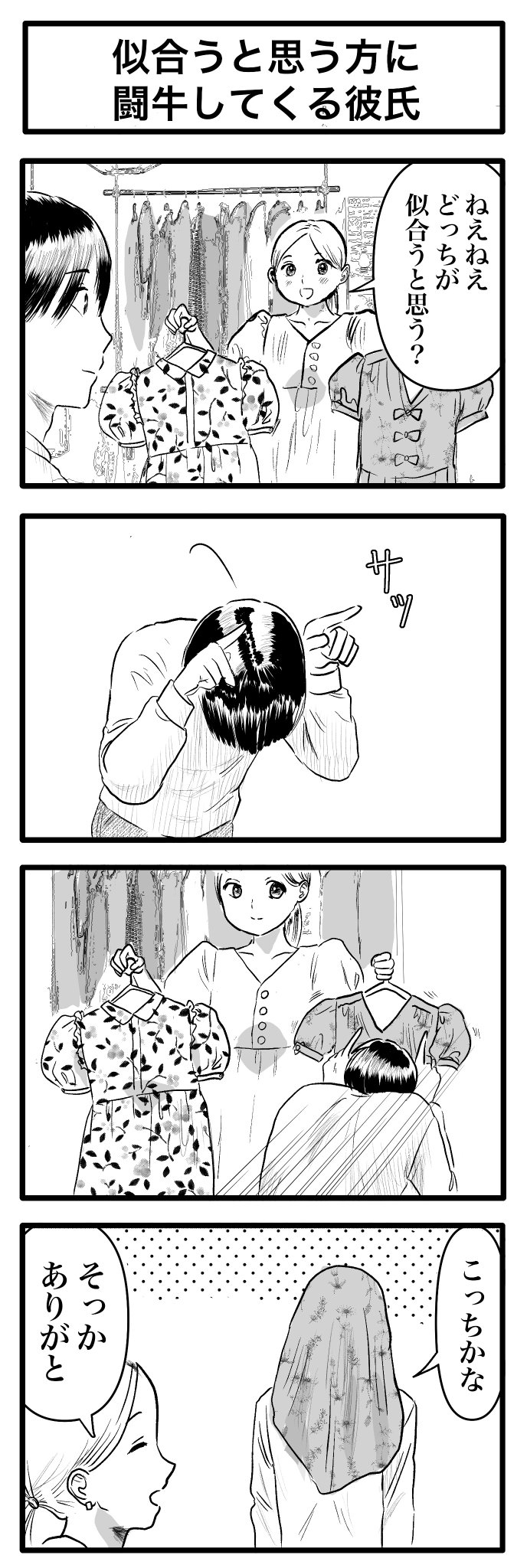 4コマ「似合うと思う方に闘牛してくる彼氏」