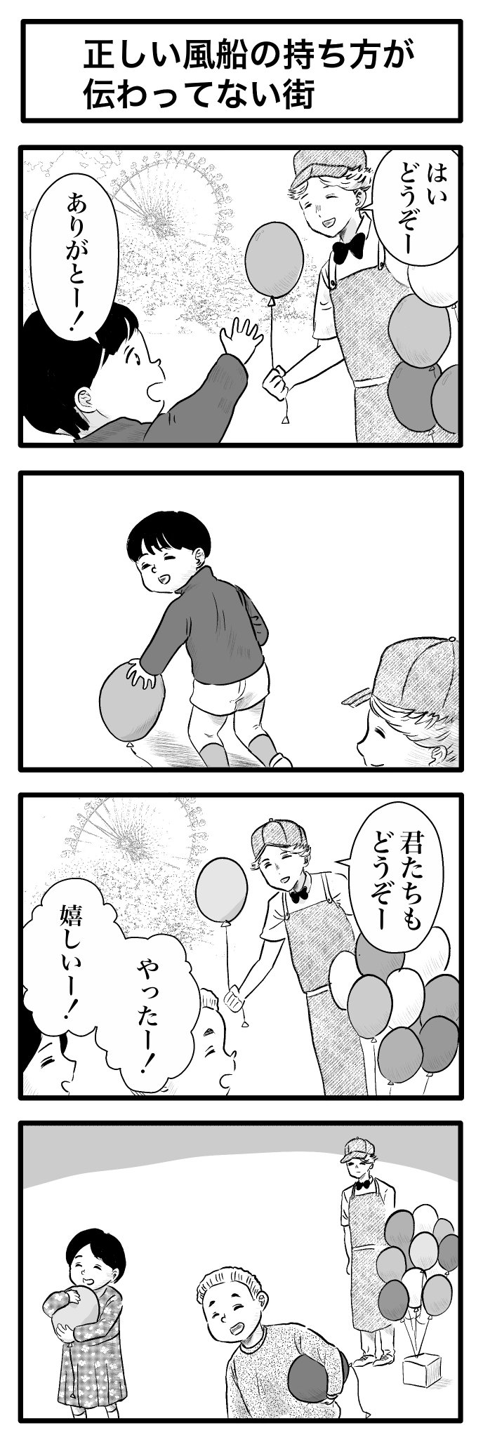 44 605 4コマ「正しい風船の持ち方が伝わってない街」 23/03/28 18:00
