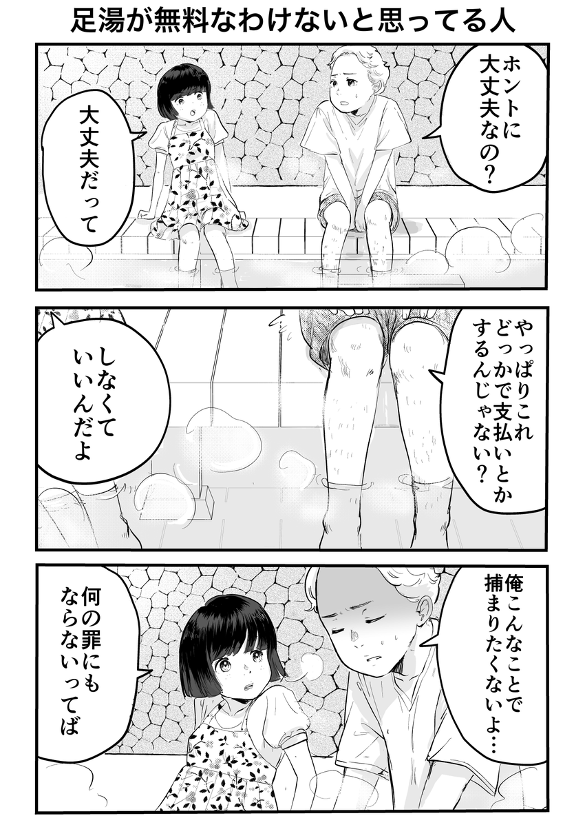 3コマ「足湯が無料なわけないと思ってる人」(再掲)