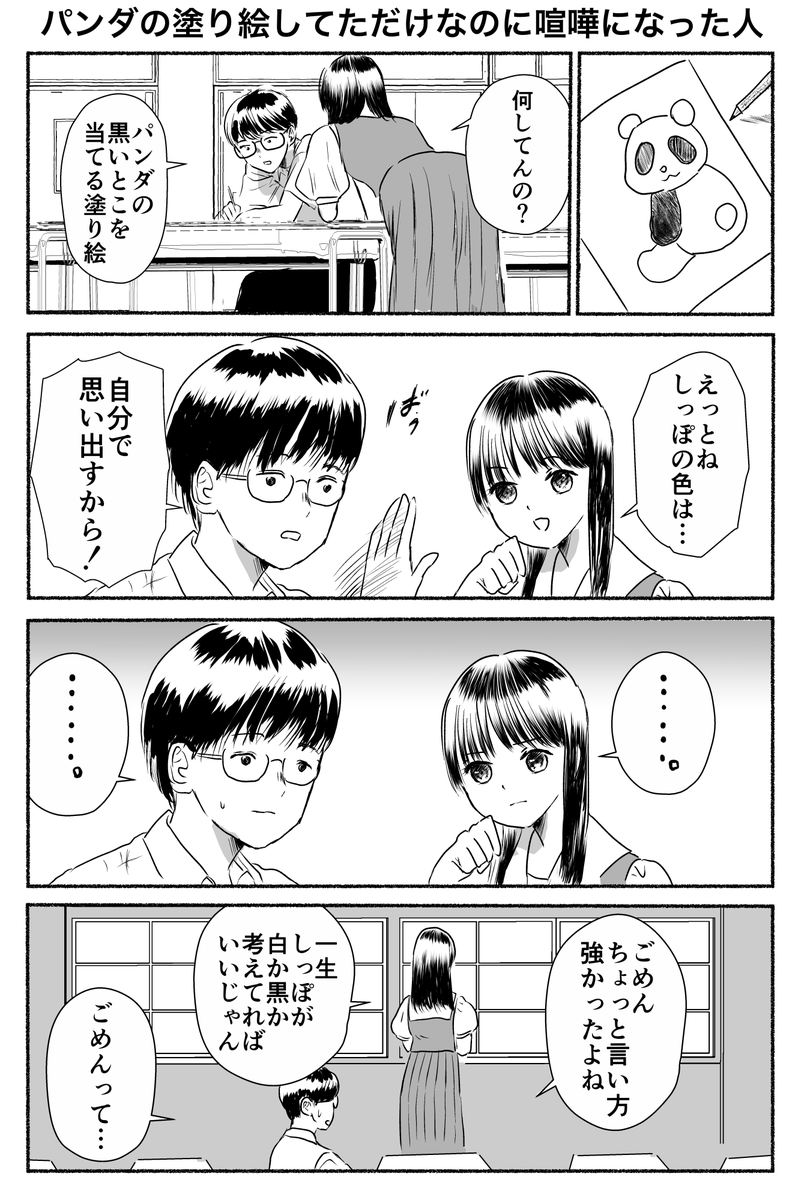 4コマ「パンダの塗り絵してただけなのに喧嘩になった人」