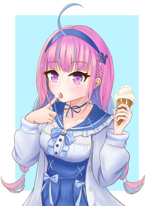 夏も終わりそうなので溶けかけソフトクリームとあくたん #あくあーと #湊あくあ #絵柄好みって人にフォローされたい