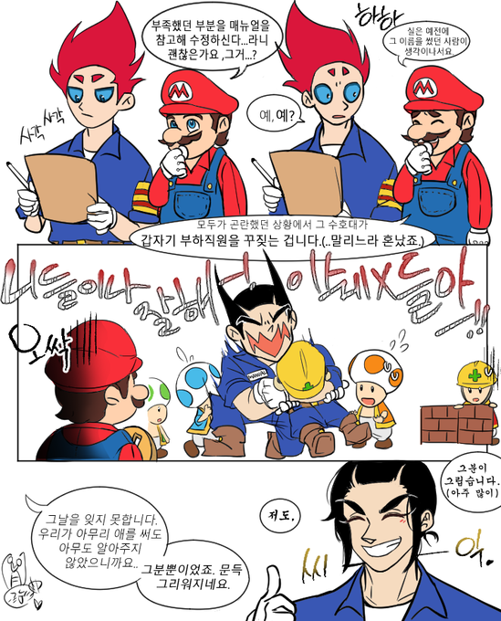전오수랑 마리오 콜라보 팬아트... (마리오 오래된 게임이니까 매뉴얼 기억 할 거 같아서요////)