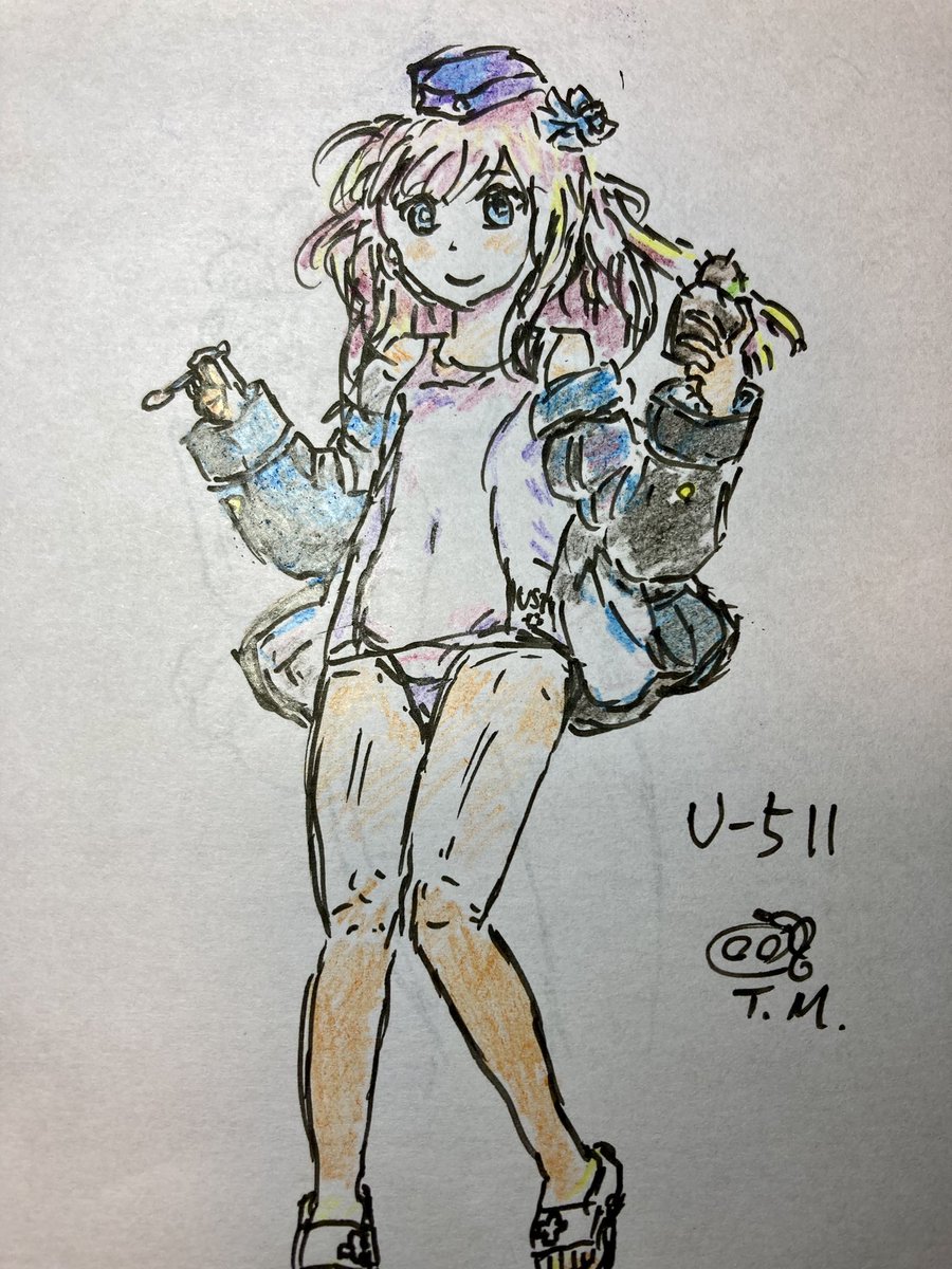 1 4 #艦これ版深夜の真剣お絵描き60分一本勝負 #艦これ版真剣お絵描き60分一本勝負_20230722 #伊201 #艦これ 23/07/22 21:07