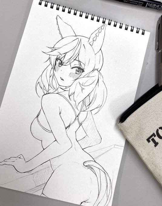 明日のために描いてた 途中 いきなりカメラ向けられて中途半端なピースになる水着のネイチャ 色もつける