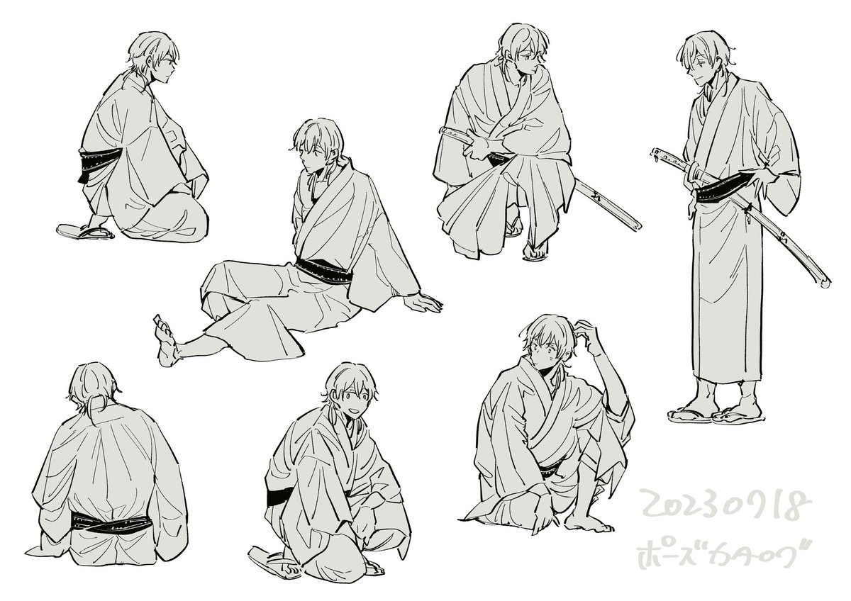 191 1327 鶴丸軽装4周年🐥㊗️ せっかくなので、今年描いてポイピクに上げたりしてた軽装落書きを再掲 23/08/09 22:14