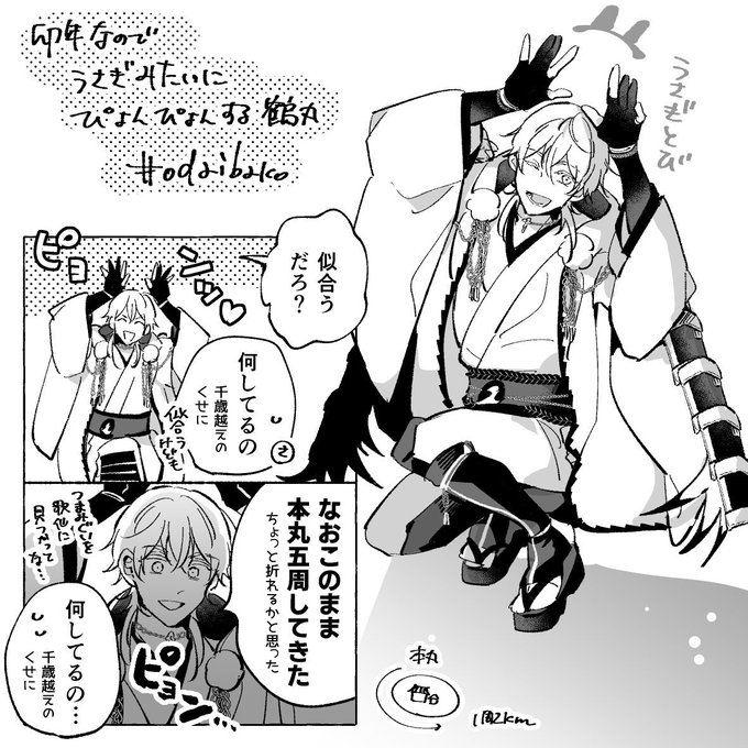 うさぎみたいにぴょんぴょんする鶴丸 &お酒を楽しむ鶴丸