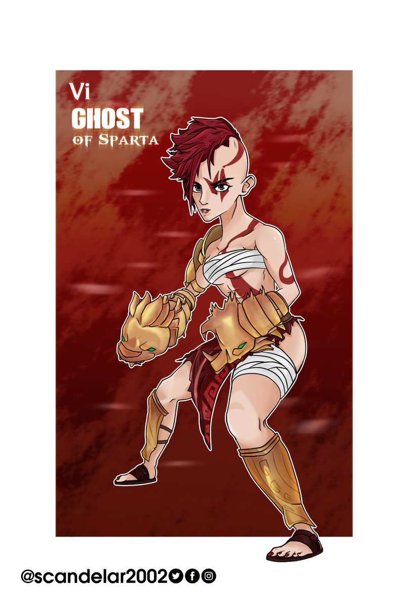Vi Ghost of Sparta!!! Otra idea extraña a la que le tenía que dar vida... ✌🏻 espero que les guste. #LeagueOfLegends X #GodofWar #ilustracion #ilustration #ilustraciondigital #art #videojuegos #videogames #arcanefanart #arcane