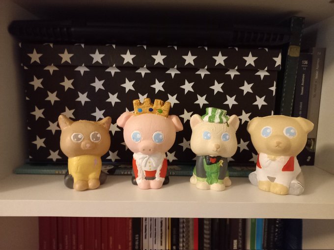 I finished painting the squishies. I used smaller squishies to make the crown and the hat, and fabric paint so they can still be squished. #sbifanart #technobladefanart #philzafanart #wilbursootfanart #tommyinnitfanart