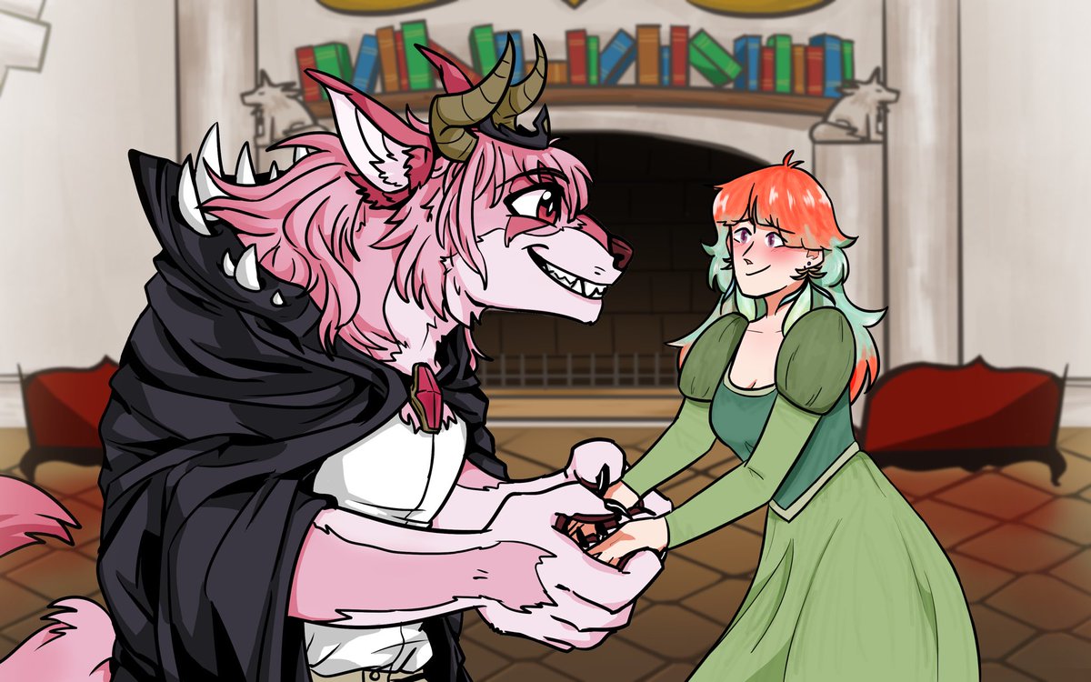 Hi ( •w• )/ I wanted to wait till all three scenes were done to post but this is a collab with @clawthxrnee !! Go follow them if you haven’t, and hopefully you enjoy our beauty and the beast au redraws with #takamori !! #callillust #artofashes #hololive #fanart #illustration