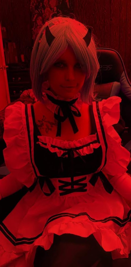 "Don't worry, Master. I'll take care of it for you!" onlyfans.com/scarletash #Onlyfans #cosplay #maid #devil