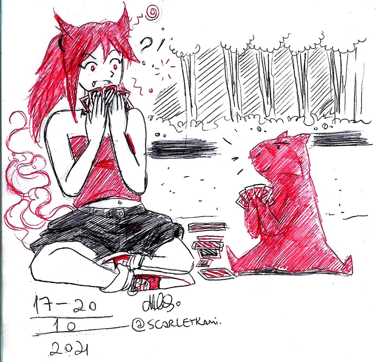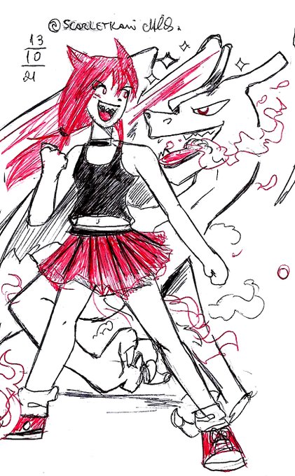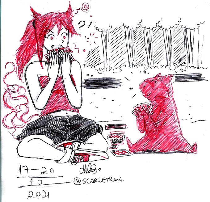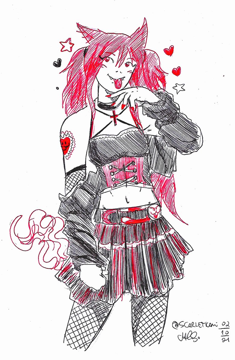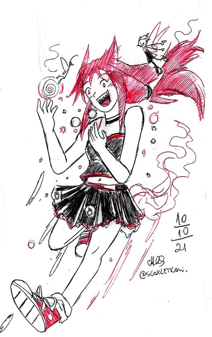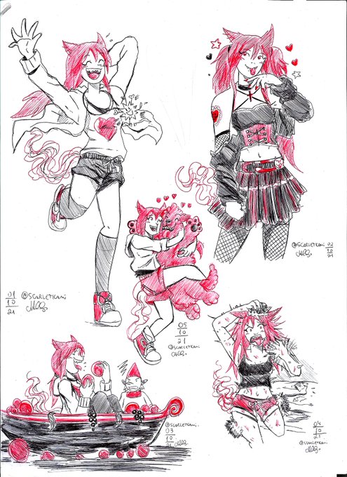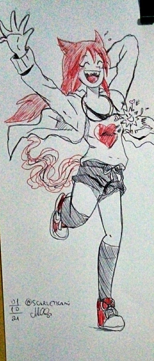 Dia 5 do #scarletober: Fofo Tema do #ttvarttober Mal a demora, as canetas falhavam pra dedéu ;-; #inktober2021