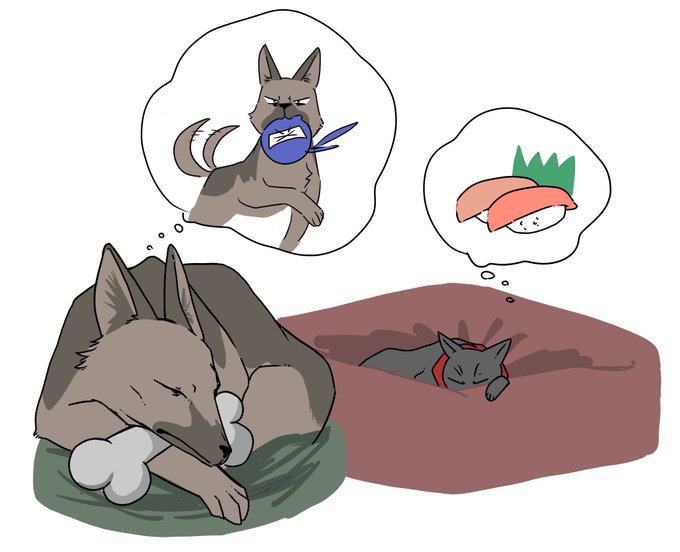 > マスラにゃとフジキドッグをヨロシクお願いします。 #odaibako_scary_bun odaibako.net/detail/request… 明らかにベッド逆じゃんっていう犬猫の写真が好きなので描きました。もはやただの犬と猫では?!