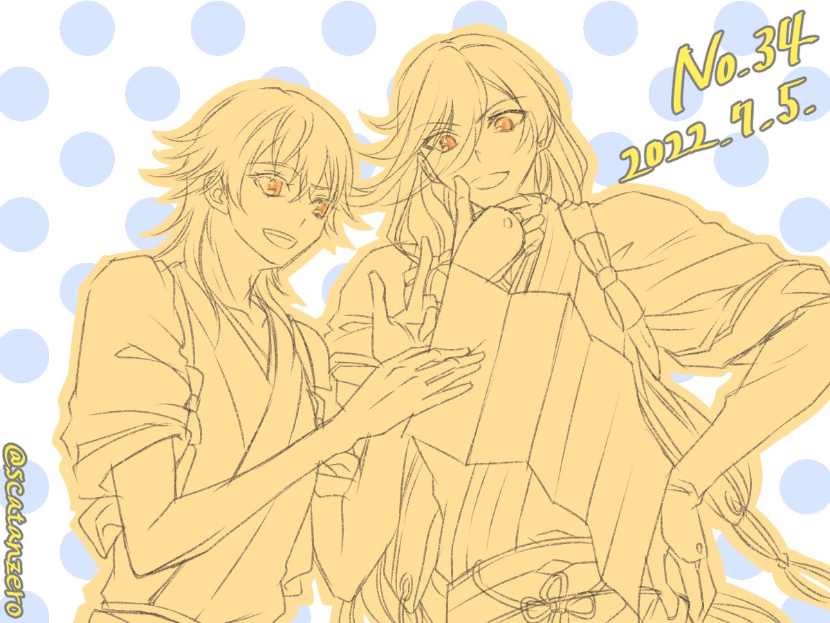 6 27 #火曜は兼さんひとりワンドロ会 第34回『驚きを計画する鶴丸と兼さん』 簡単な色つけになりましたが!! 鶴丸も大好きなので楽しかったです🥰お題をありがとうございました!🥰 22/07/05 22:36