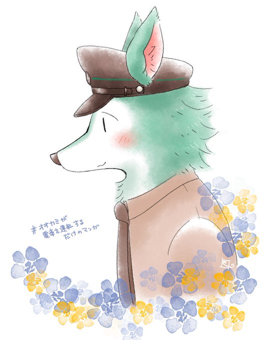 最近教えてもらった漫画がすっごくよかったのでファンアート描いた…!絵柄はほんわか可愛くて最高だし背景やら小物やら色んな描写が細かくてすごい…何から何までとても良い…続き楽しみです…😊 #オオカミが電車を運転するだけのマンガ