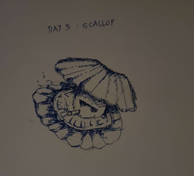yes the scallop has sunglasses and a cigar #inktober2022 day 3