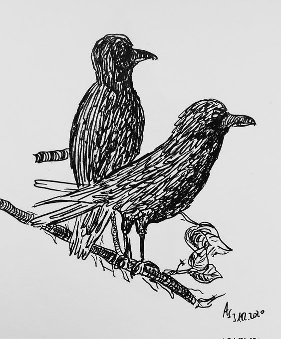 #kleineKunstklasse #artshare #ArtistOnTwitter #inkdrawing #penandink #artistsontwitter #sketch #sketchbook #art Hier für #animalmarch "Frühwerk"-Raben aus dem Archiv, als ich begonnen hatte, mich intensiver mit dem Zeichnen zu beschäftigen....