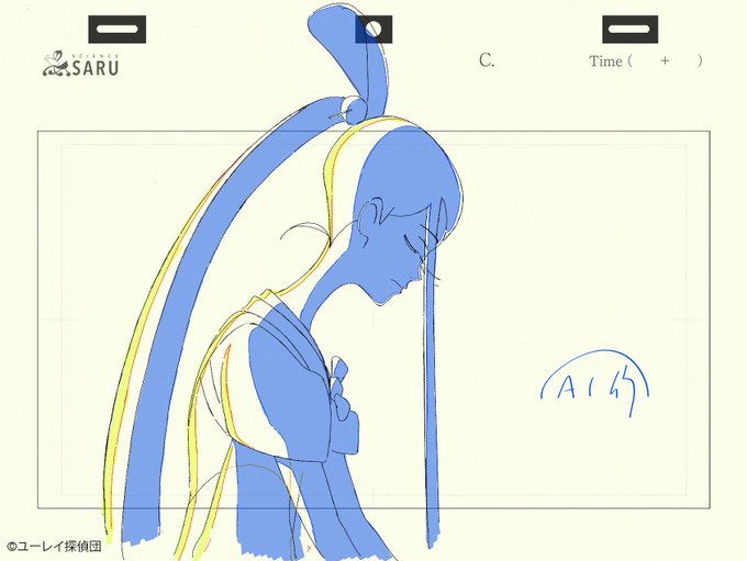 【#四畳半タイムマシンブルース】より、 相島の作監修正を大公開! 相島は城ヶ崎、明石さん、小津と同じ映画サークルの上級生! 今作では明石さんが撮る映画の主役に大抜擢👀❗️ ぜひ劇場で相島の活躍をご覧ください🤓✨