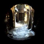 新作「永い夜の間に」(ながいよのまに) は薄暗くて井戸のあたりしか見えないも知れないが、5つの窓全てに部屋があり1番奥の窓には時計が、そして右側1階の窓の格子には花が scope展24日(土曜日)まで!