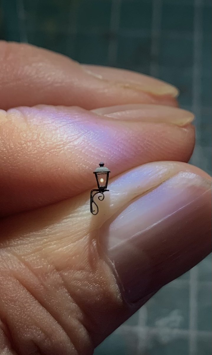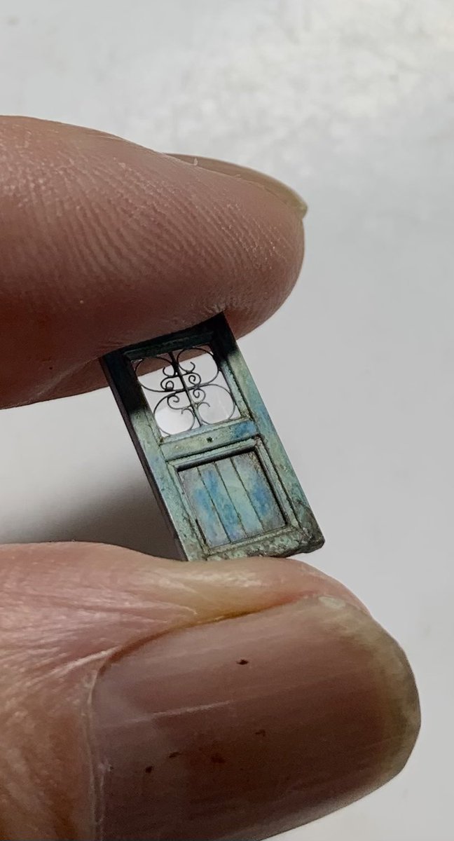 181 1136 顕微鏡で覗きながら0.1mmの真鍮線をバネ状にして付けていく作業、何度作っても飛んで行った。ガラスも嵌めてあとはあのドアノブを付けたら完成だが、飛んで行く気がする。 22/08/04 14:13