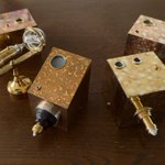 39 165 イリュミナシオン展7月8日からです。 (GALLERYうぇすと)暗い部屋の中で微かに光る作品が並びます。今回のオブジェは 真鍮、銅、アルミ、ガラス、ハーキマーを使った作品「神のみぞ勝利者なり」(2023年)をだします。箱もできた 23/06/28 05:13