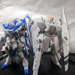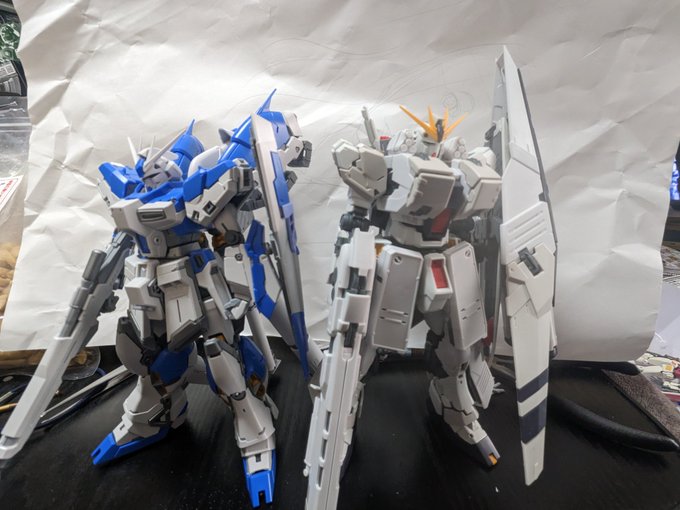 RGの「Hi-νガンダム」と「νガンダム」全然違うんですね♥ νガンダムはモデル系イケメンで、Hiνは体育会系イケメンって感じです💕 #ガンプラ好きな人たちと繋がりたい #ガンプラの画像貼るとRTされると聞いて