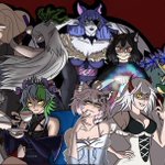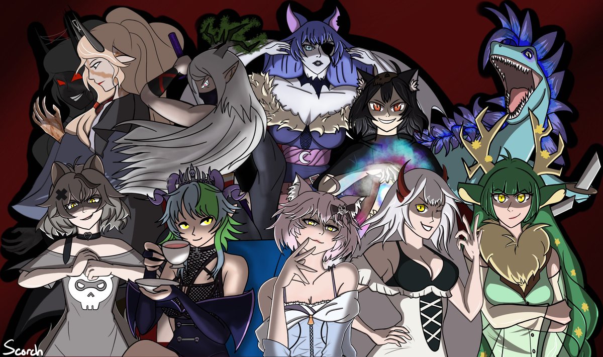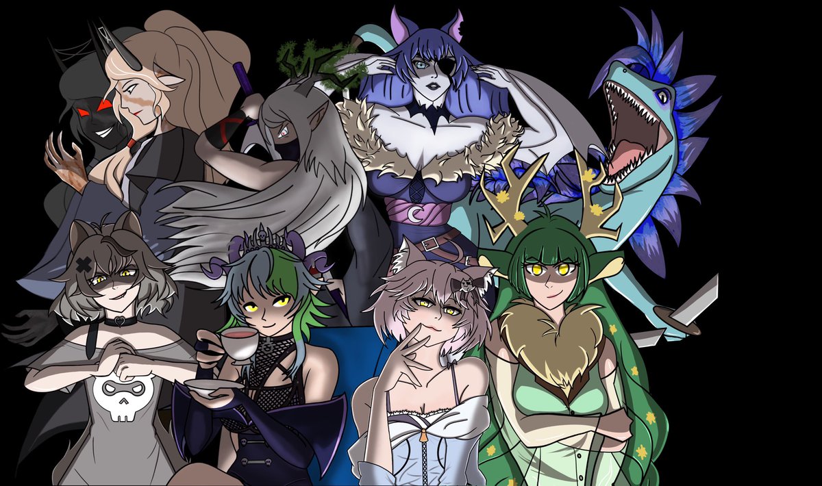 “The Whims of Fate” The group shot of our fav DnD girls! Thank you @Veibae, @LichVtuber, @NyanNyanners, @snuffyowo, and @haruka_karibu for the fun times during #otikatascurse! I hope you enjoy your new #DnD campaign with Brett! #veibae #nyanart #snuffyart #lichcraft #harukart