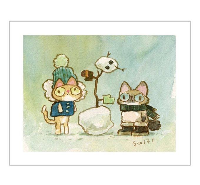THE CHILLY CATS. Cats and their winter creations. New limited edition prints coming this Black Friday to theScottCShop.com (link in bio) #cats #artprint #watercolor #snowman #winterfashion instagr.am/p/ClO3g3nvB8Y/