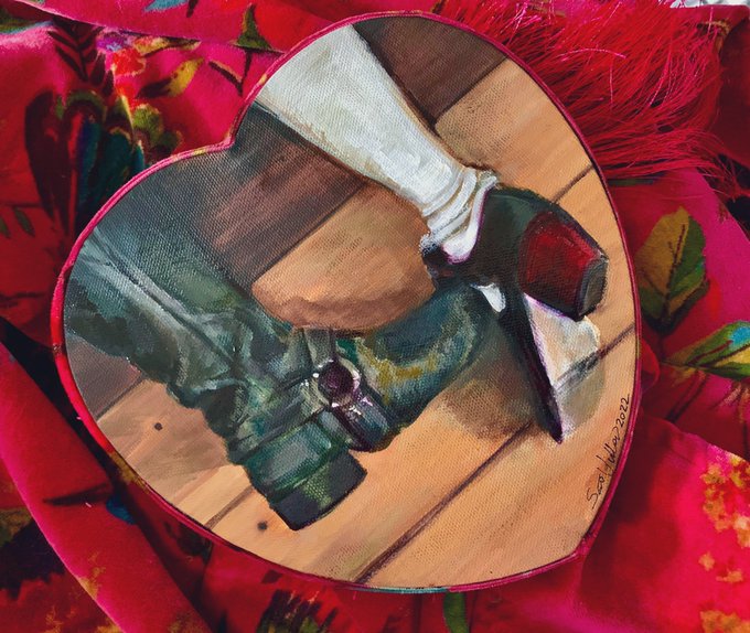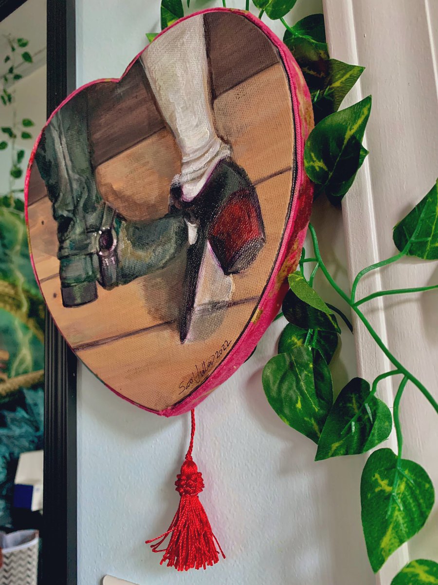i 💖 modifying the canvases i get, and this is a new fave …saw this heart canvas and knew it had to be the foot-to-foot. the trim is the special touch, w/ a scrap from The Robe™️ and a tassel added by @zerbehunter per my request (me saying “i have an idea”) #OFMD #OFMDfanart