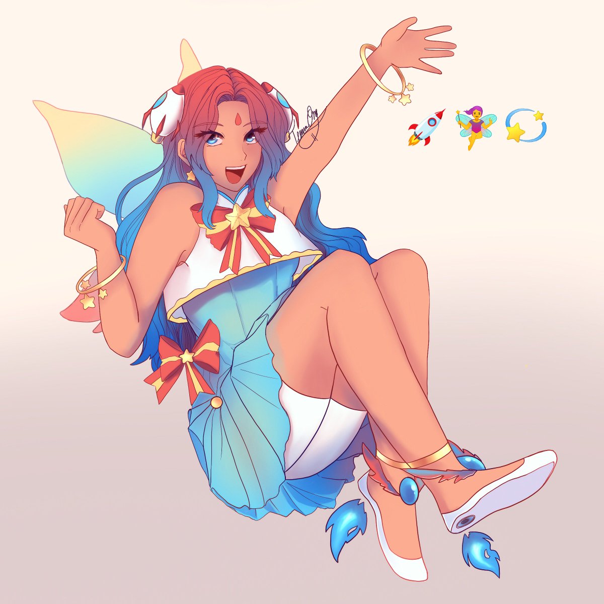 I designed a space fairy magical girl from these three emojis: 🚀🧚♀️ Art challenge was inspired by @AkuoSay !! Go check out their art 😊💕 #cutiesaturday @cutiesaturday #magicalgirl