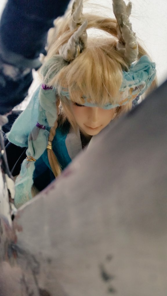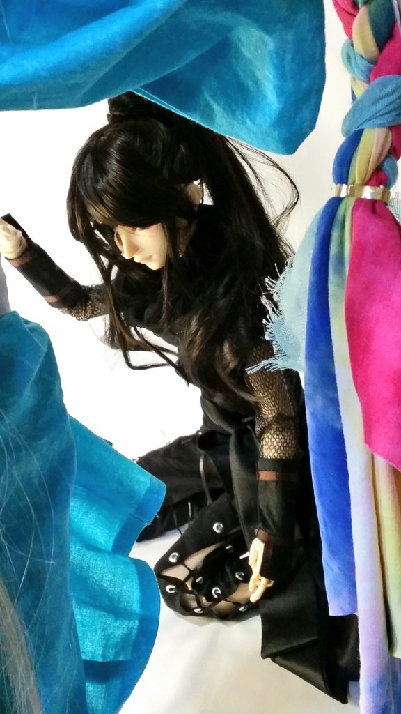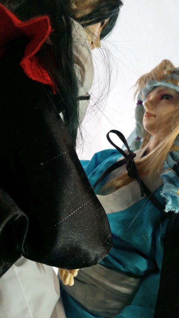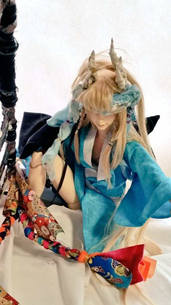 #今夜のドール撮影120分一本勝負 お題【ひっばる】 過去・既出 服をひっぱる 経若様の服を持ち 片手で上げる ちゅん太に酒呑をやってもらうときは ギリギリを演じてもらいたい💨 (本人喜んでるみたいです)