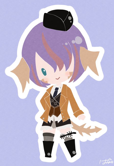 紫水上衣×ミコ初期脚のツインテールミコッテちゃん₍˄·͈༝·͈˄₎ #FF14 #FF14art #FF14イラスト #miqote