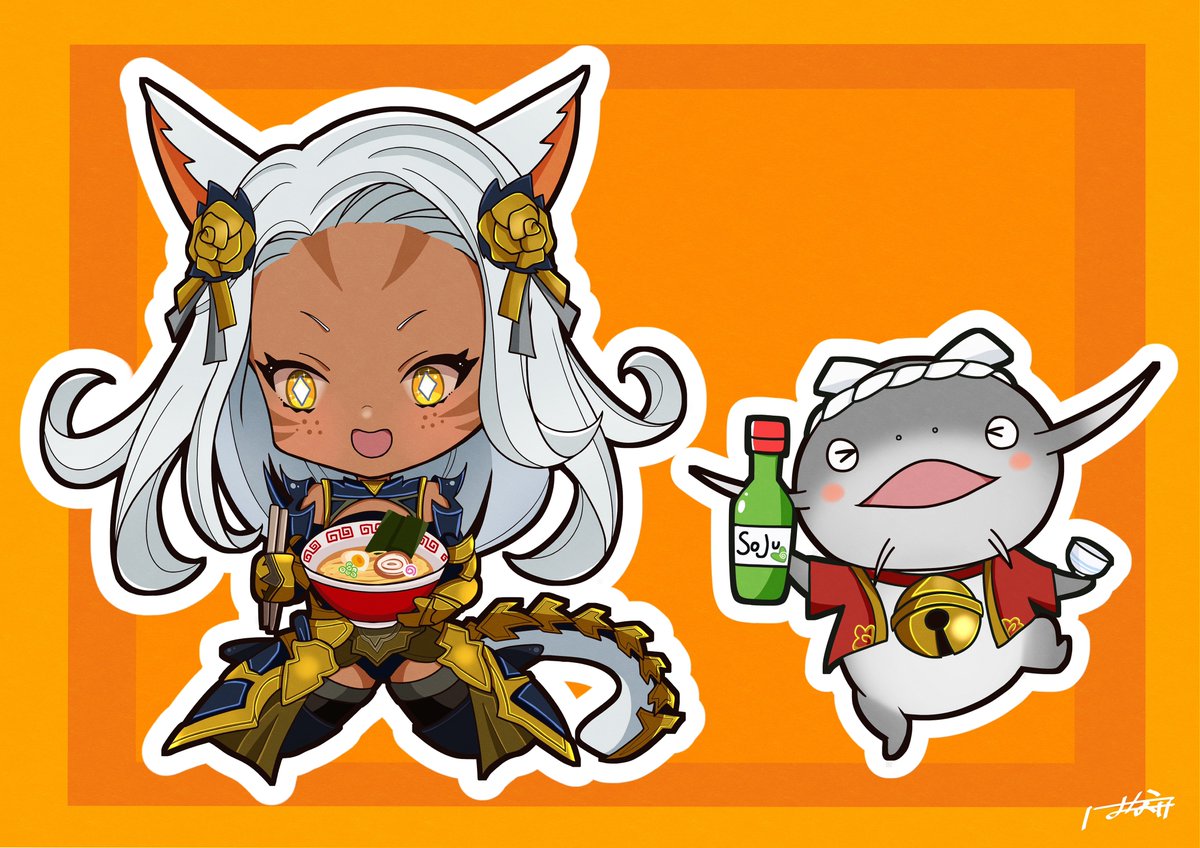 褐色ミコッテちゃんとナマズオ🍜🍶 #FF14 #FFXIV #FF14art #FFXIVART #miqote