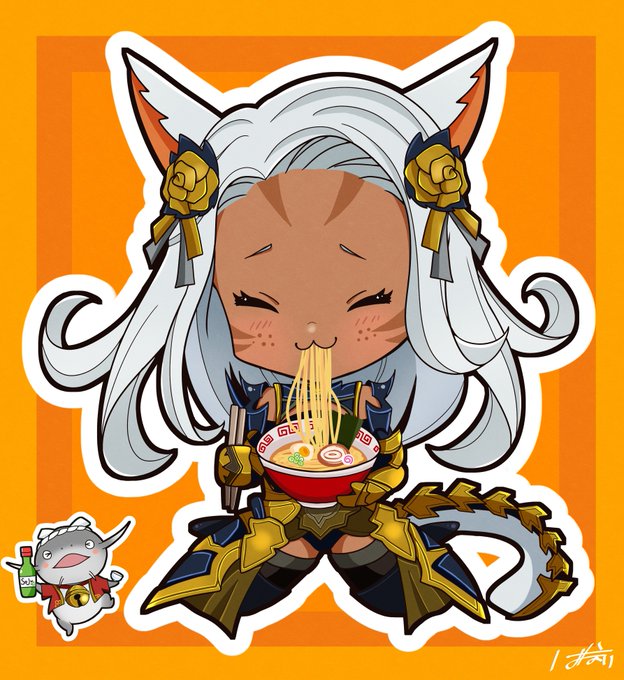 幸せそうにラーメン食べてる褐色ミコッテちゃん🍜🍥 昨日の差分です! #FF14 #FFXIV #FF14art #FFXIV #miqote