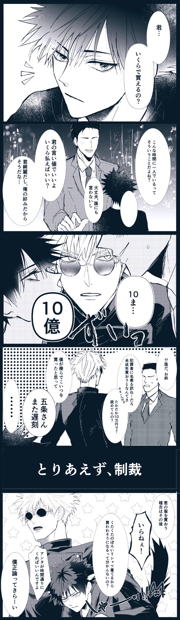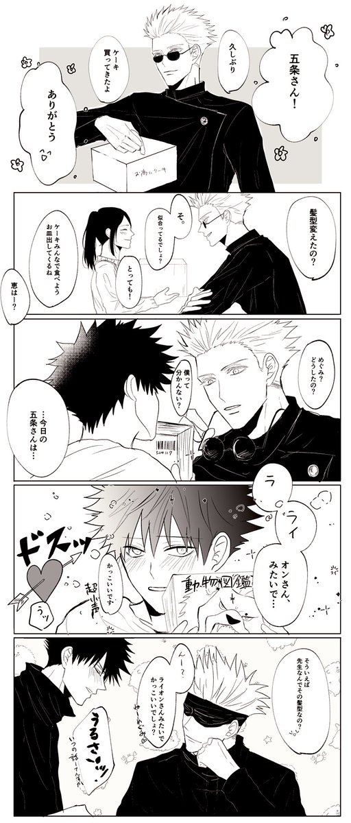 呪○廻○ 五○悟×伏○恵 来年こそは五伏プチで思いっきり買い物したい……!! よろしくお願いします🙏︎💕︎︎💕︎ #ひらいて赤ブー #愛しの教え子