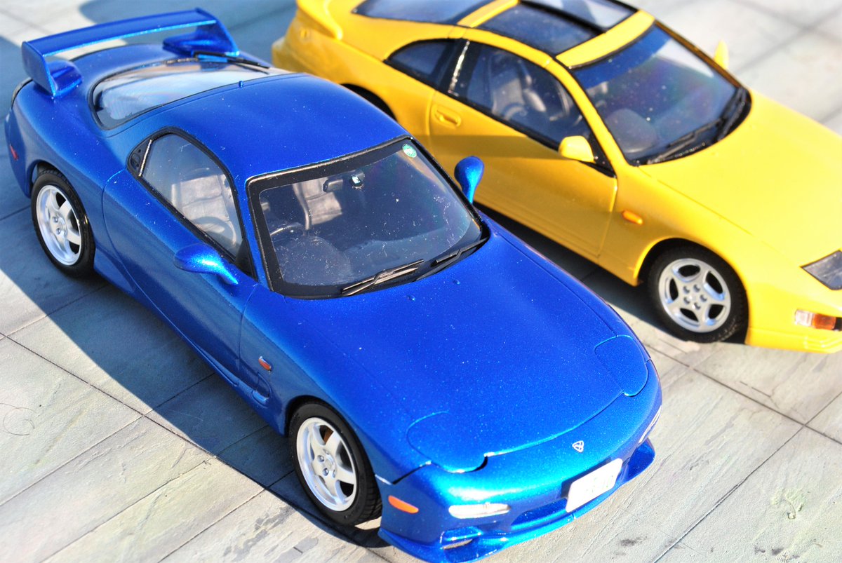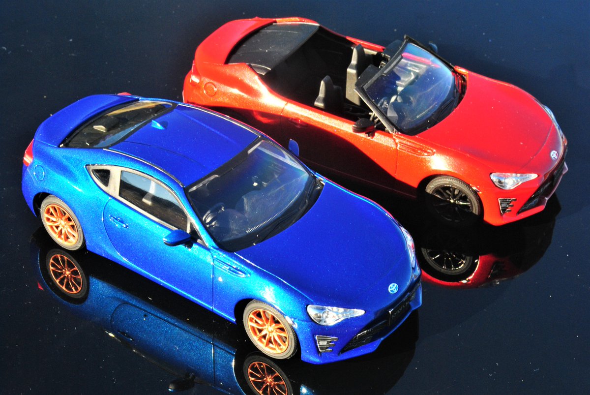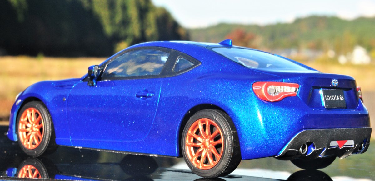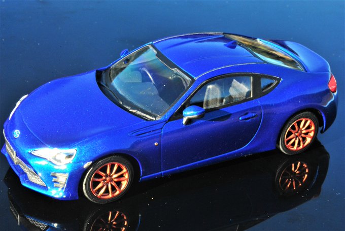 アオシマ 1/32 トヨタ 86 完成です。 マイカブルー仕上げでお顔が見えなければ群馬育ちにも見える仕様です。あと角度によってはジャガータイプFにも見えr・・・。というワケで4枚目は群馬風と広島風のセット #aoshimaranking2111