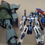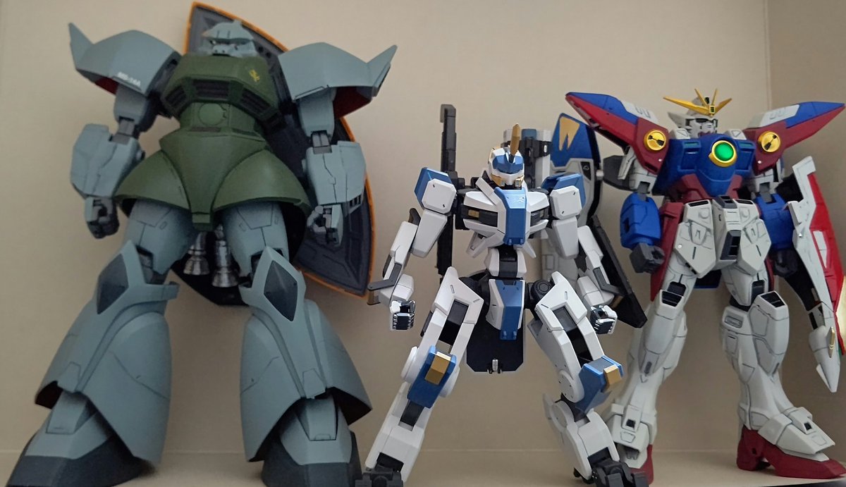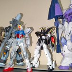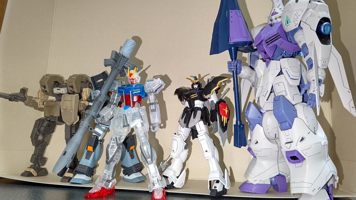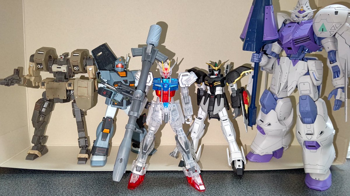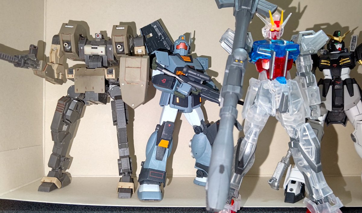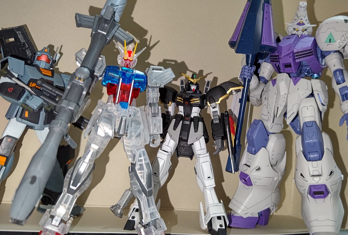 #今月作ったプラモ晒そうぜ 今回はこの4体 憧れのMG GP01を組んで ジョウガンでバリバリ遊んで 近年キットも組み、技術進歩を感じる事ができて非常に面白かった😄 9月はこれにて製作終了 来月のエアリアルが楽しみ🎵 #ガンプラ好きと繋がりたい #境界戦機