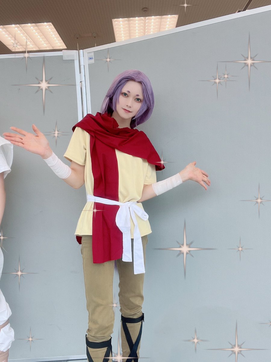 27 97 ⚠︎コスプレ シャカさんの貴重な全身写真🥹🥹🥹 毛先がお尻のところからぴょこんって出てる🥹🥹🥹 2枚目はおにぎりに夢中なムウさま ( ˊ̱˂˃ˋ̱ 🍙) 23/08/04 20:55